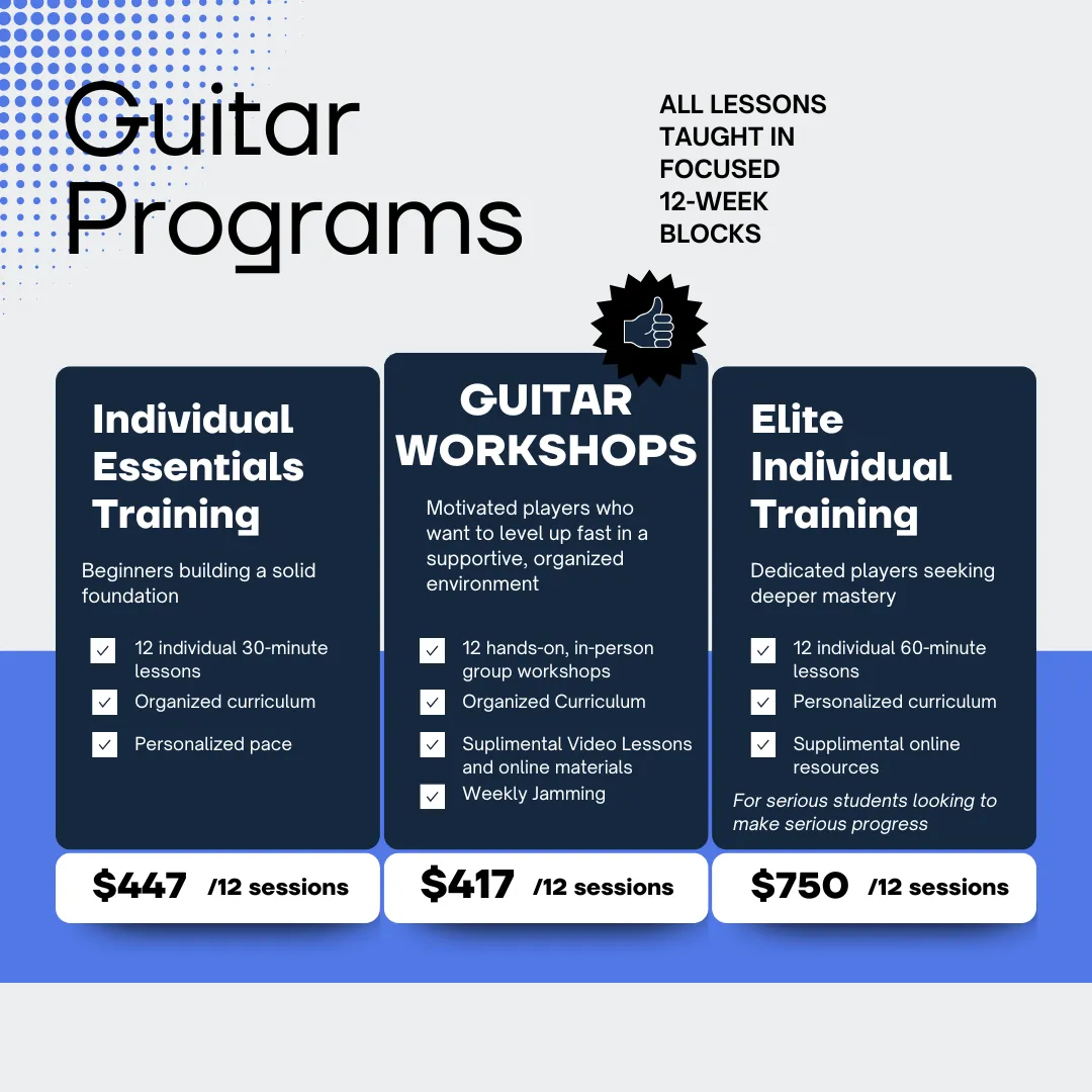 All lessons and classes are taught out of the guitar studio in my house in Harker Heights.
